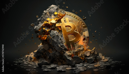 Wall mural : Bitcoin in stone - be a part of the global finance revolution with this photo of bitcoin's increasin