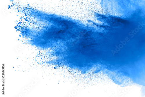 The watermark will not be included on Wall mural.: Bizarre forms of blue powder explode cloud on background - launched blue dust particles splash on whi