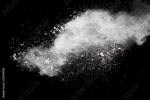 The watermark will not be included on Wall mural.: Bizarre forms of white powder explosion cloud against dark background - launched white particle splas