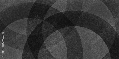 The watermark will not be included on Wall mural.: Black abstract background with gray circle curves and striped lines or ribbon shapes layered in abst