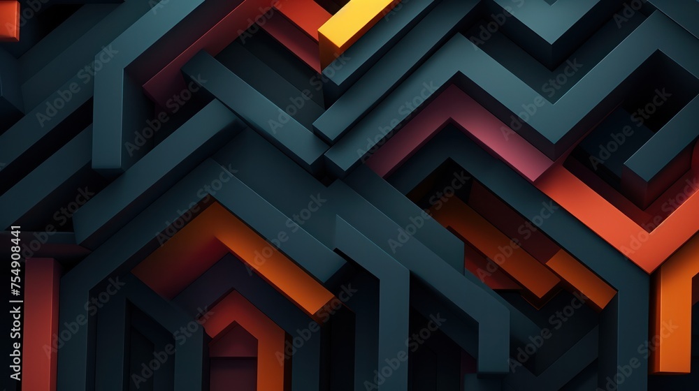 Wall mural black abstract folded paper effect. bright colorful line background. maze made of paper. 3d renderin