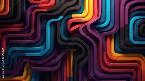 Wall mural black abstract folded paper effect. bright colorful line background. maze made of paper. 3d renderin