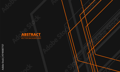 Wall mural black abstract modern background with gray and orange geometric lines and outlines. vector illustrat