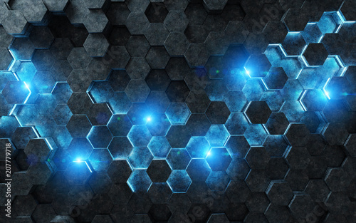 The watermark will not be included on Wall mural.: Black and blue hexagons background pattern 3d rendering