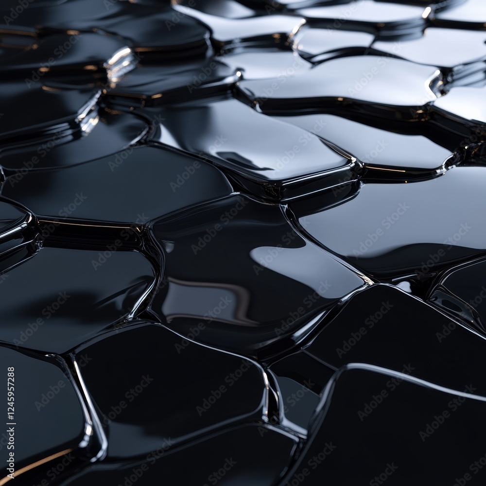 The watermark will not be included on Wall mural.: Black and gold hexagonal pattern on a shiny metallic background with a futuristic design