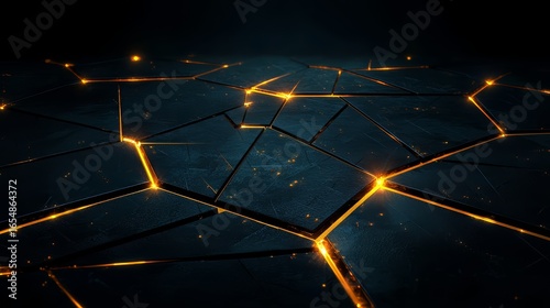 Wall mural black and orange image of a broken surface with a yellow glow. the image has a futuristic and indust