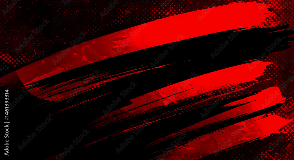 Black and red abstract background with brushstroke and halftone styleWall mural