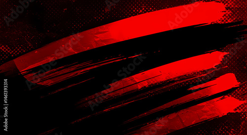 Wall mural : Black and red abstract background with brushstroke and halftone style