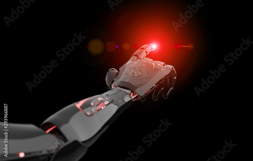 Wall mural : Black and red intelligent robot cyborg arm pointing finger on dark 3d rendering