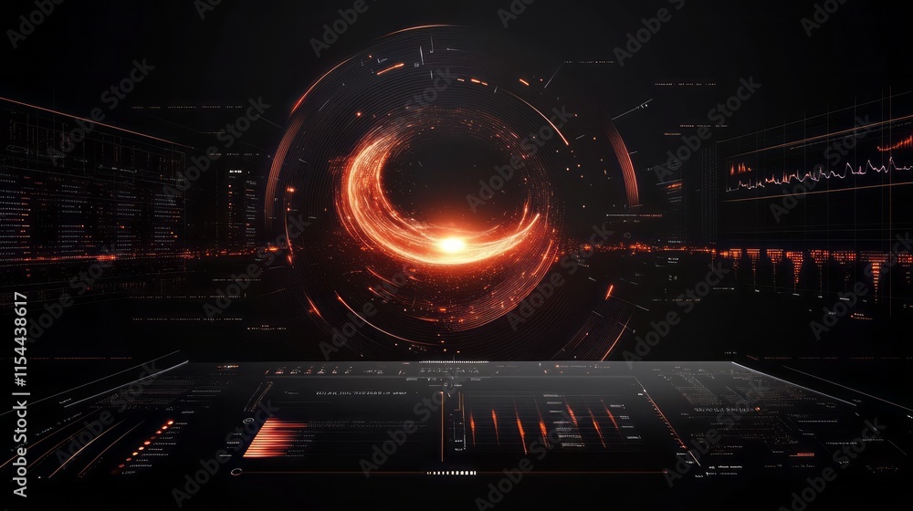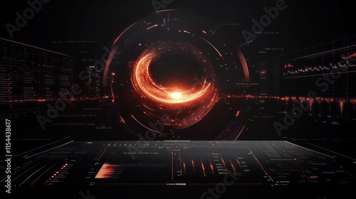 Black and red technological background with a symbolic representation of a black hole in a digital eWall mural