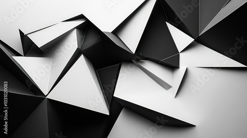 The watermark will not be included on Wall mural.: Black and white abstract geometric composition with sharp angles
