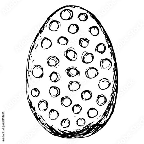 Wall mural black and white hand-drawn sketch of the easter egg with circle pattern. simple vector rough pencil