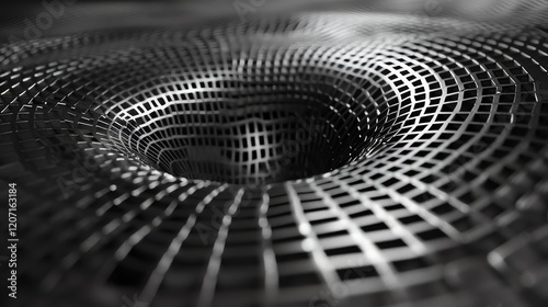 Wall mural black and white image of a surface with a hole in the center. the surface is made of a grid of small - Wall murals Wall mural black and white image of a surface with a hole in the center. the surface is made of a grid of small - Wall murals