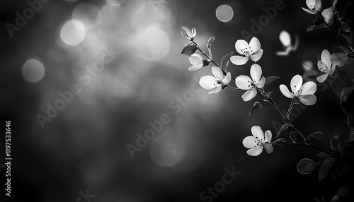 Wall mural : Black-and-white image of abstract bokeh lights glowing softly against a dark backdrop -