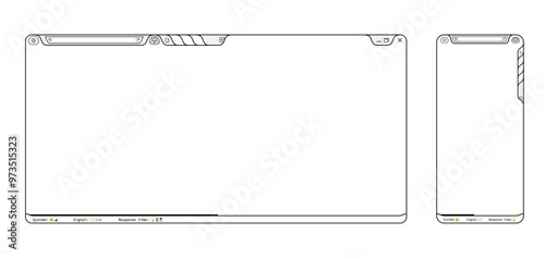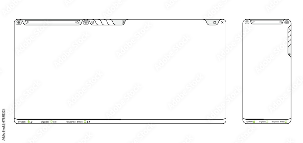 Wall mural black and white internet browser phone app webpage, website template vector design with robot button - Wall murals Wall mural black and white internet browser phone app webpage, website template vector design with robot button - Wall murals