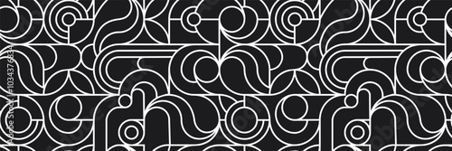 Wall mural black and white linear seamless pattern.geometric background with circles, arcs and arches.texture f