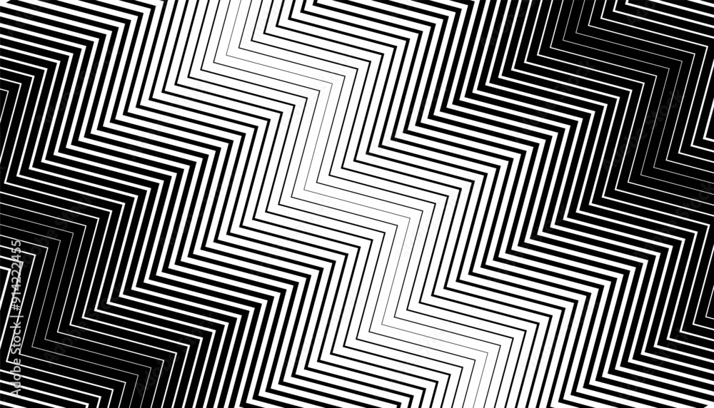 Wall mural black and white zigzag transition pattern. diagonal motion background. vector format illustration
