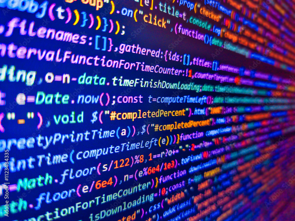Wall mural : Black background space with multiple layers coding - ad with work for developer - work of software dev