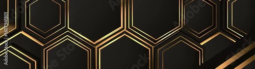Wall mural : Black background with a golden geometric hexagon pattern a dark and moody color palette, simple line