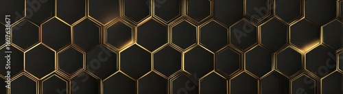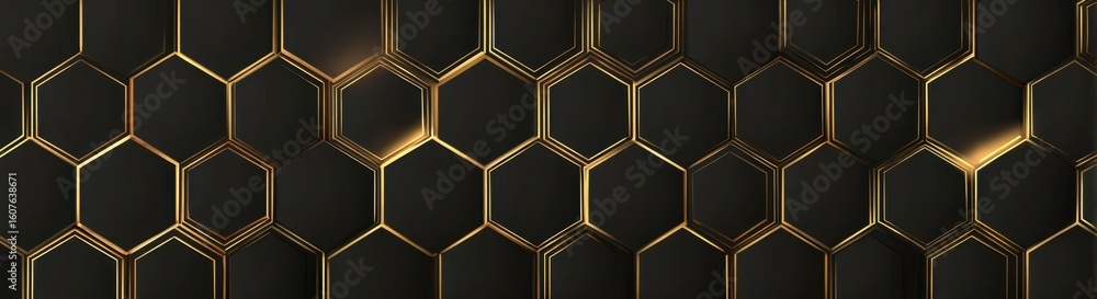 Wall mural : Black background with a golden geometric hexagon pattern a dark and moody color palette, simple line