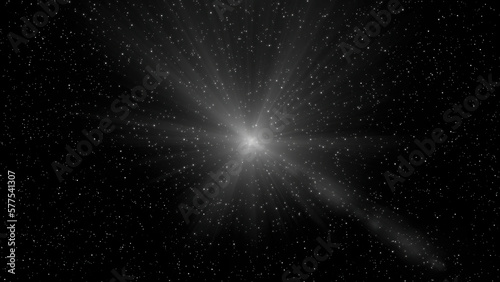 Wall mural : Black background with animated stars and light in the middle - motion - dark background with sky and st
