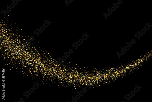 The watermark will not be included on Wall mural.: Black background with gold glittering particles in the form of an abstract flow of a wavy line
