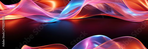 The watermark will not be included on Wall mural.: Black background with wavy seamless pattern texture with neon gradient multicolored curves volumetri