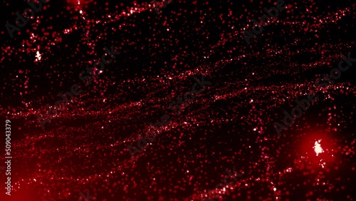 Wall mural black background.design.bright red and pink glitter in computer graphics moves in small particles in