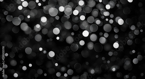 Wall mural black bokeh background with soft focused light circles for abstract and artistic designs