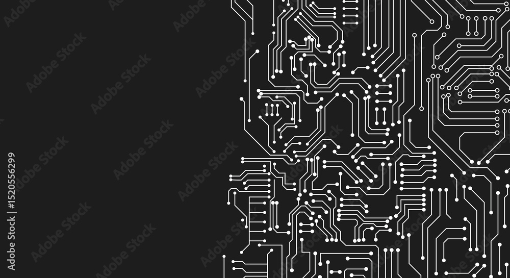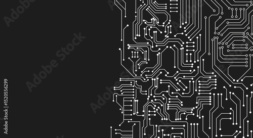 Wall mural black circuit board structure. white lines and dots circuit board. science and technology design - Wall murals Wall mural black circuit board structure. white lines and dots circuit board. science and technology design - Wall murals