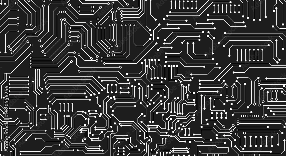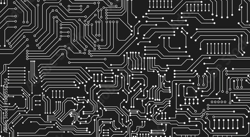 Wall mural black circuit board structure. white lines and dots circuit board. science and technology design. il - Wall murals Wall mural black circuit board structure. white lines and dots circuit board. science and technology design. il - Wall murals