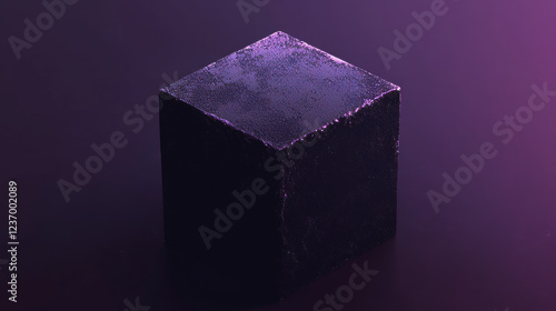 The watermark will not be included on Wall mural.: Black cube abstract texture with violet low key lighting background 3d illustration render