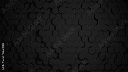 Black hexagon grid moving as an abstract geometric animation for background in 4kWall mural