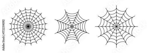 The watermark will not be included on Wall mural.: Black line spider web set - simplified cobweb collection - halloween frame and borders elements for ba