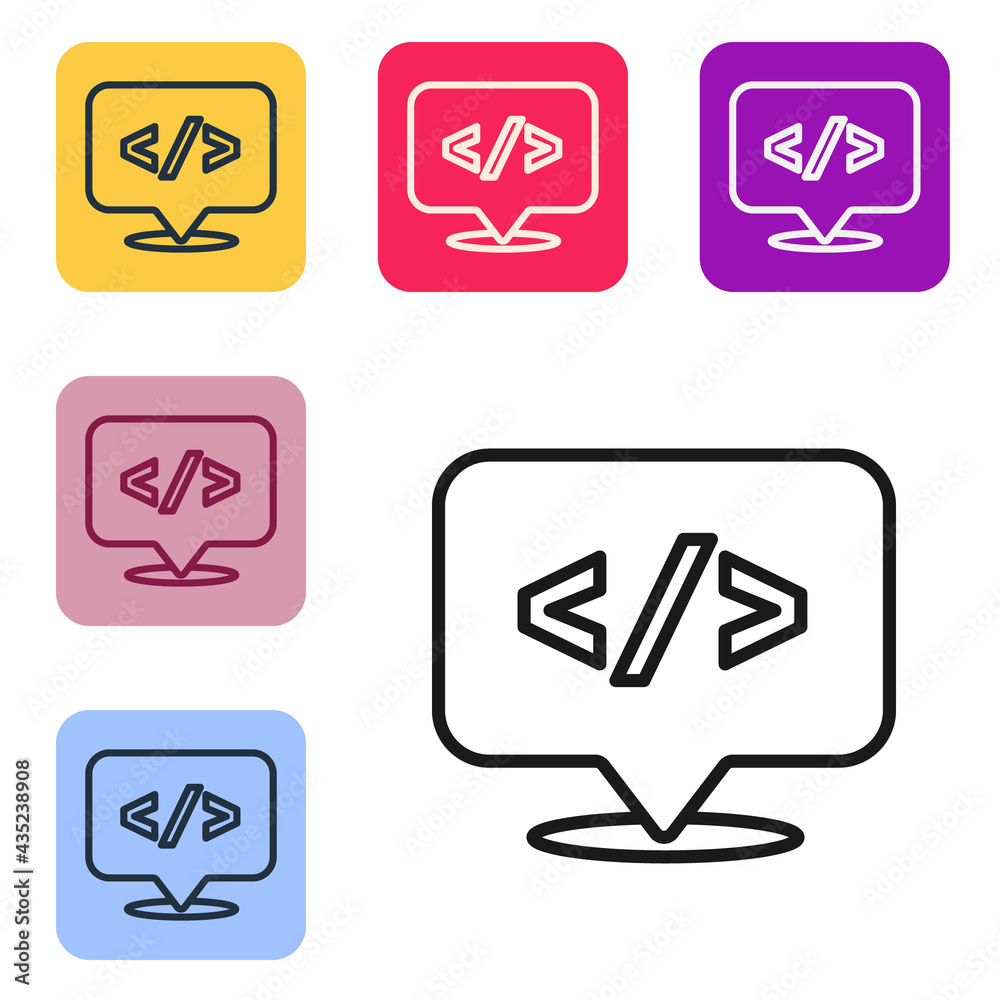The watermark will not be included on Wall mural.: Black line web design and front end development icon isolated on white background - set icons in colo