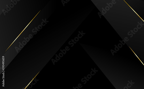 Wall mural : Black lines tech geometric modern dynamic shape with gold light abstract background vector illustrat
