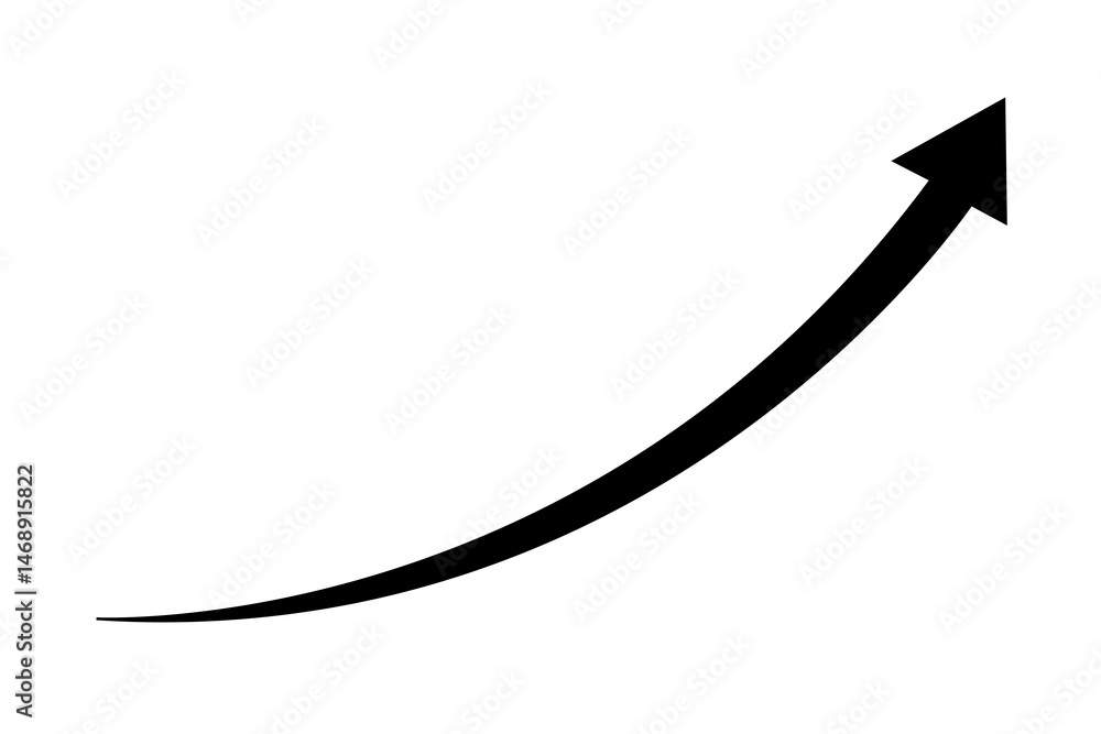 Wall mural : Black long curved arrow graph icon arrow pointing up side png file type
