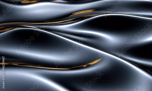 The watermark will not be included on Wall mural.: Black metallic waves with smooth reflective surface creating abstract fluid motion and dynamic elega