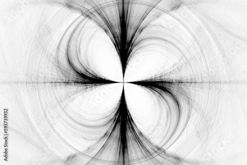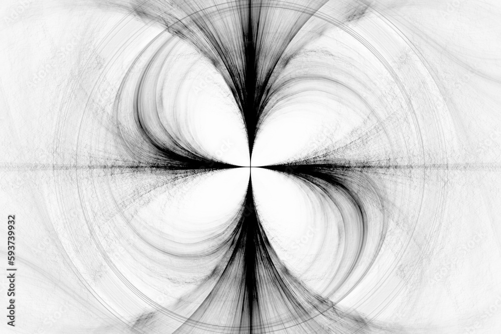 The watermark will not be included on Wall mural.: Black pattern of curved waves and rays on a white background - abstract fractal 3d rendering