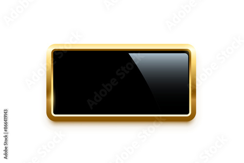 Wall mural black rectangle button with golden frame vector illustration. 3d glossy elegant design for empty lab - Wall murals Wall mural black rectangle button with golden frame vector illustration. 3d glossy elegant design for empty lab - Wall murals