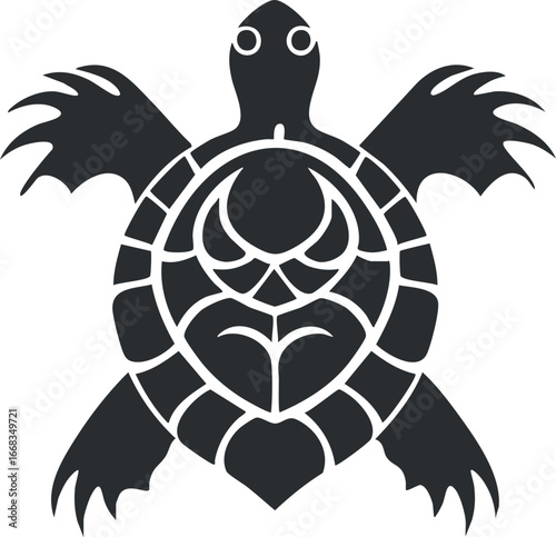 Wall mural : Black silhouette of a stylized sea turtle with abstract shell patterns on a white background