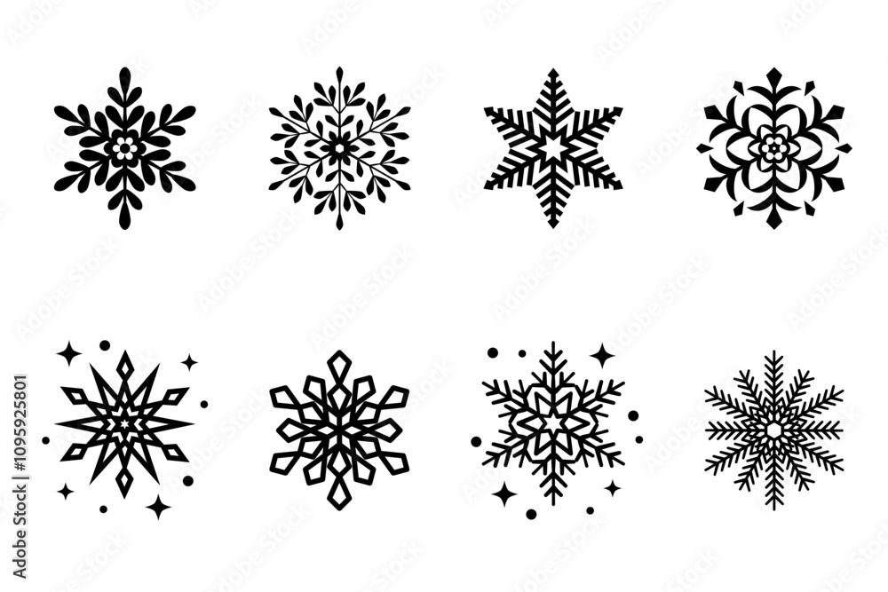 Wall mural : Black snowflake illustration set, vector design elements of beautiful snowflake -