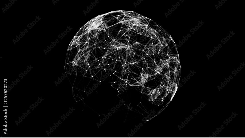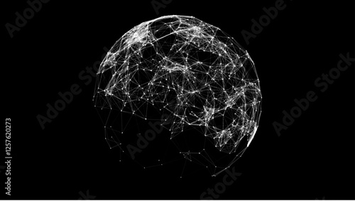 Black sphere consisting of points and lines - modern wireframe elements - technology grid sphere - vectWall mural