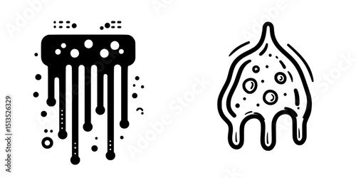 The watermark will not be included on Wall mural.: Black vector icon representing abstract shapes with drips and droplets in a minimalistic style