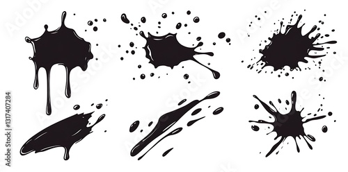 The watermark will not be included on Wall mural.: Black vector water or paint splashes and drops set, isolated on a white background