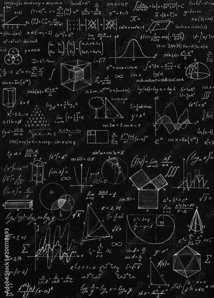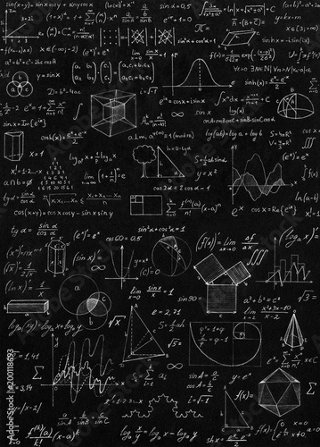 Wall mural blackboard inscribed with scientific formulas and calculations in physics and mathematics. - Wall murals Wall mural blackboard inscribed with scientific formulas and calculations in physics and mathematics. - Wall murals