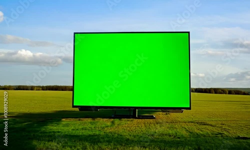 Blank billboard with green screen on a grassy field, a vast canvas for advertising under the expansiWall mural