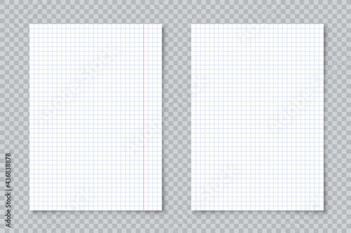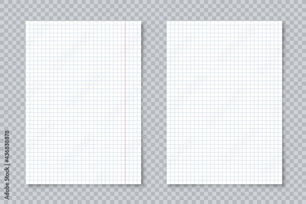 Wall mural blank lined paper sheets in a4 format on transparent background. notebook page, document. design tem