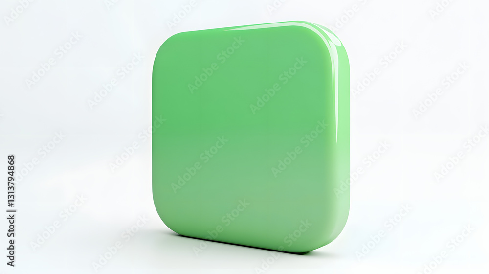 Wall mural blank mobile application icon, button - green square with round corners. 3d rendering, white backgro - Wall murals Wall mural blank mobile application icon, button - green square with round corners. 3d rendering, white backgro - Wall murals
