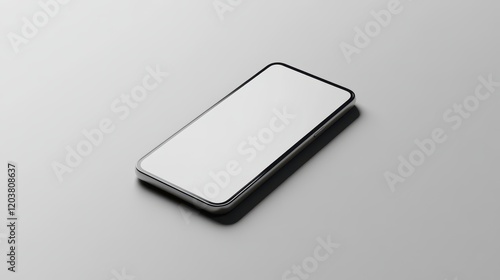 Wall mural : Blank mockup template of a smartphone on a smooth light gray background, with soft reflections and m